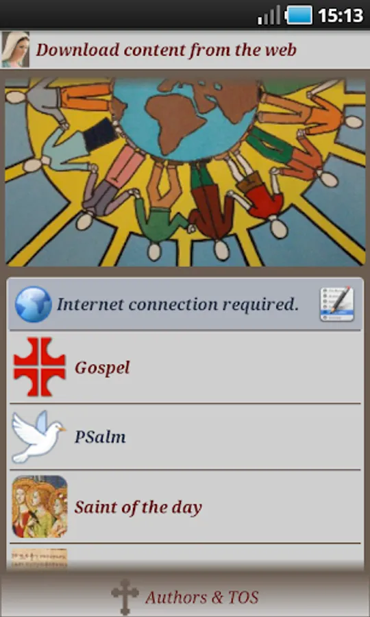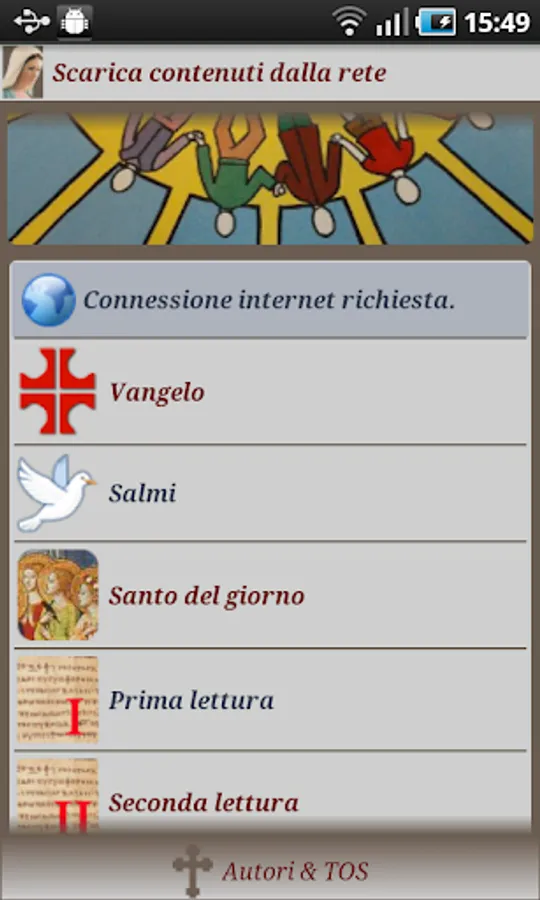 It also offers Daily readings, Gospel, Epistole, Saint,PSalms, midi files(songs)