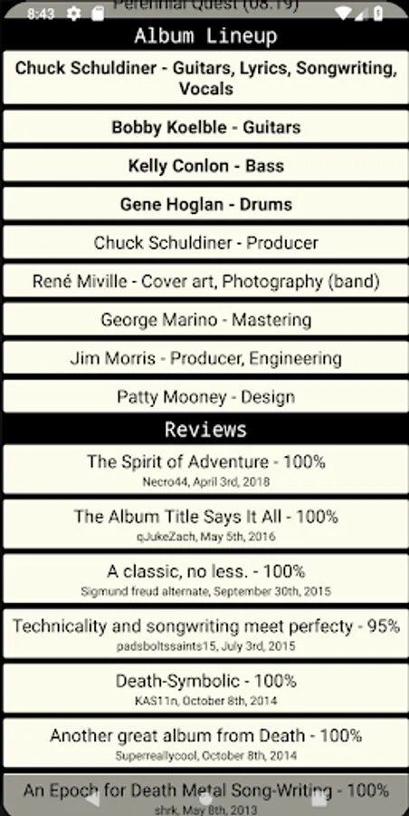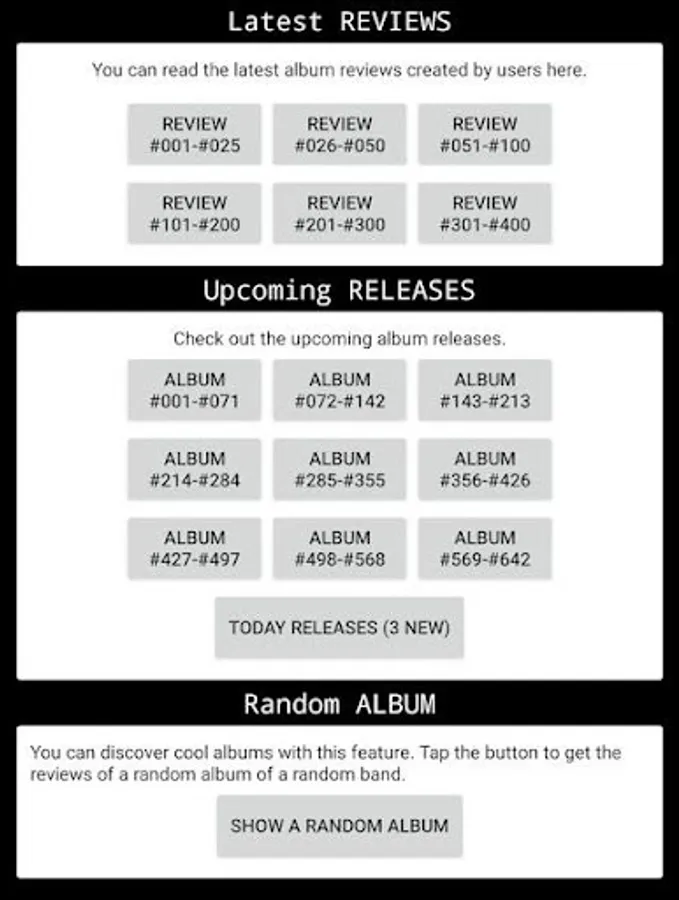 You also can browse random bands/albums/reviews with this app. Metal Empire also has an experimental youtube integration.