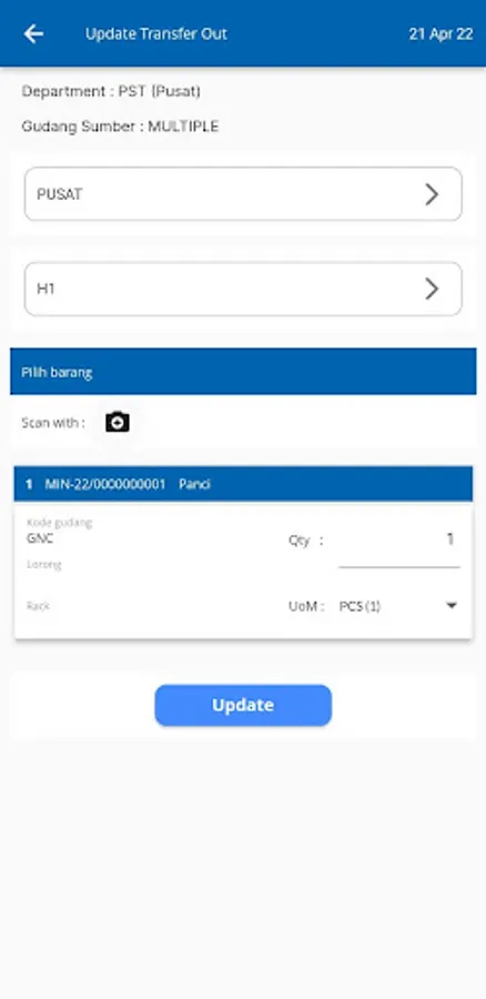 Warehouse Management System by MAS. For picking list transactions, packing and transfer out.