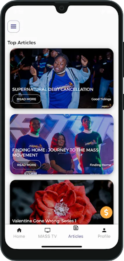 3. Read captivating articles and Jaw-opening testimonies on the Articles section.