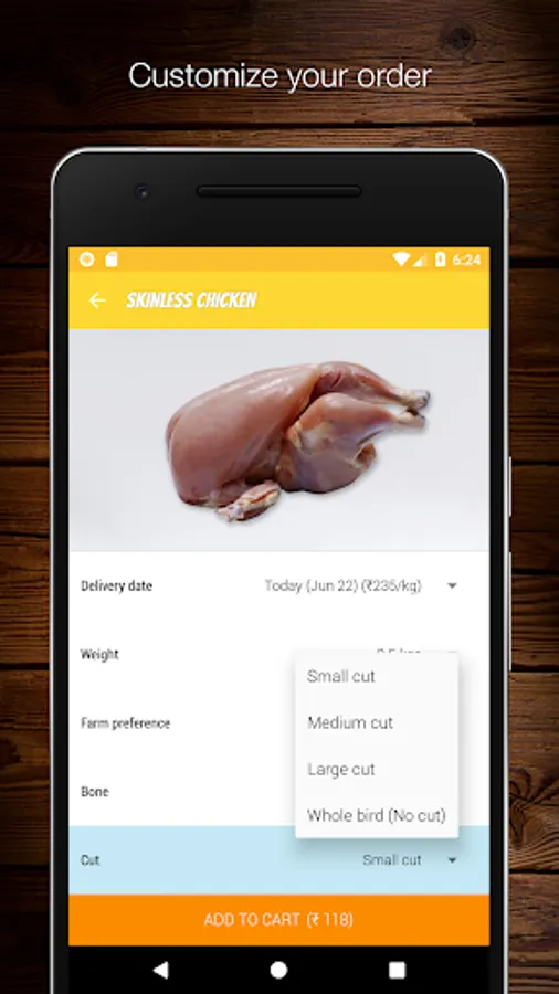 ✓ Chicken - 1.8kg live bird is our most preferred weight. We work with our vendors to ensure that the birds are antibiotic free before they are delivered to our units.
