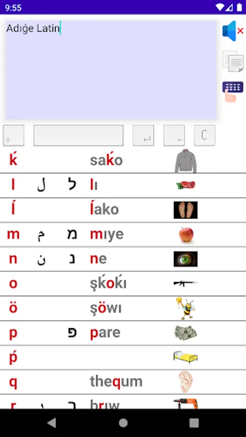 With this app you will be able to learn the letters and their sounds, type sentences, and copy and paste what you've typed to other apps.