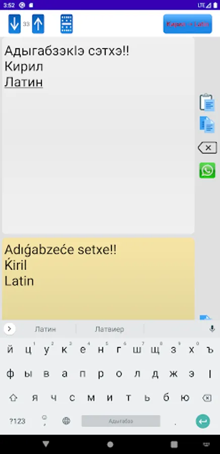 - Convert Adiga (Circassian, Adygha), Adyga) text from the Cyrillic (Kiril) alphabet to the Latin alphabet or from Latin to Cyrillic.