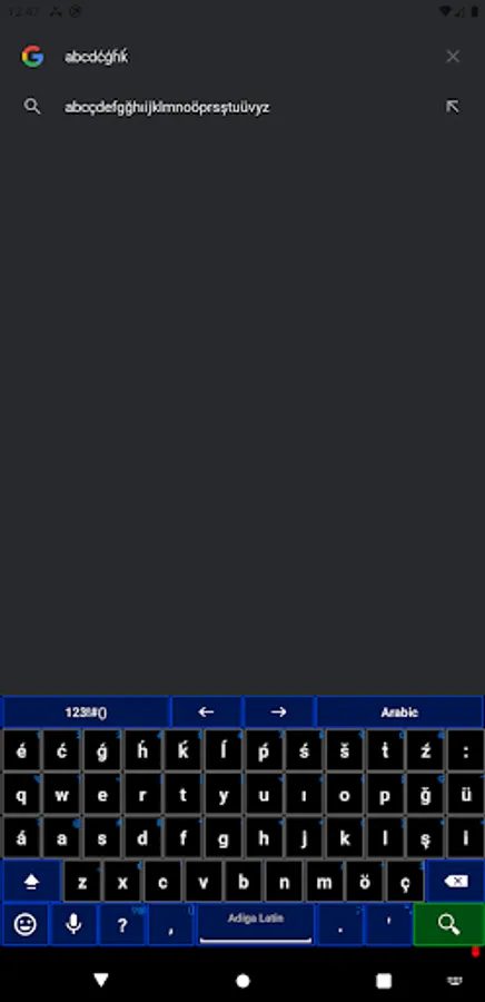 Adiga (Circassian) language, Latin alphabet based keyboard.