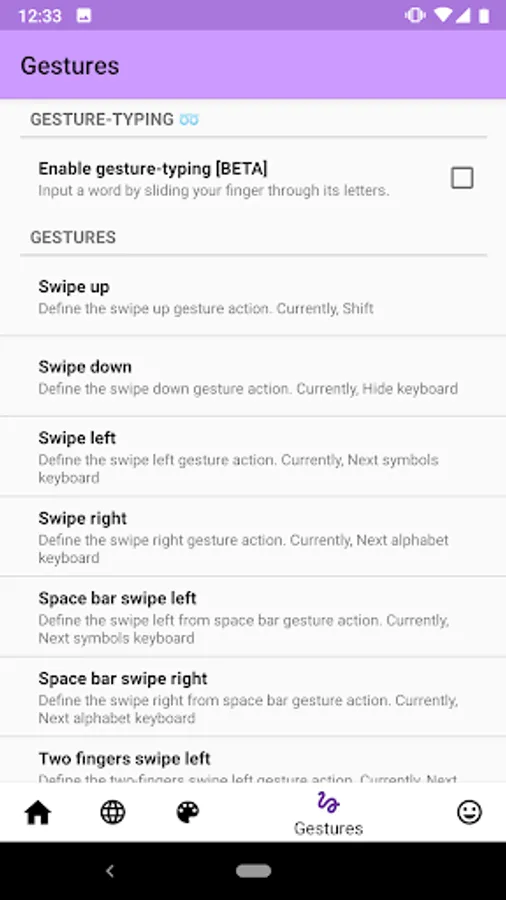 ** Experimental Gesture-Typing (enable in the Settings app).