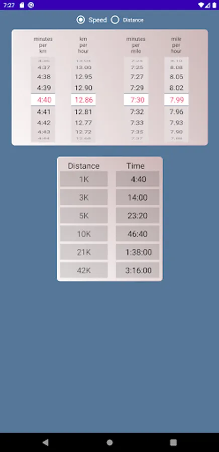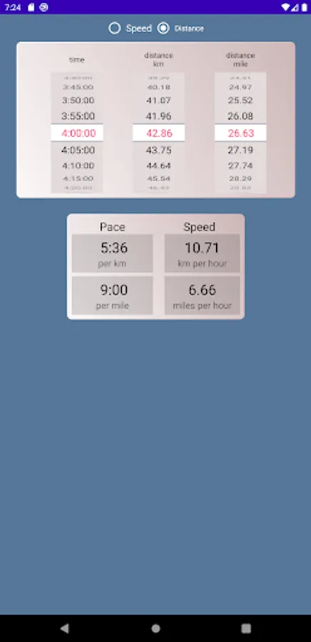 - Quickly calculating distance from time and vice versa (for the selected pace or speed).