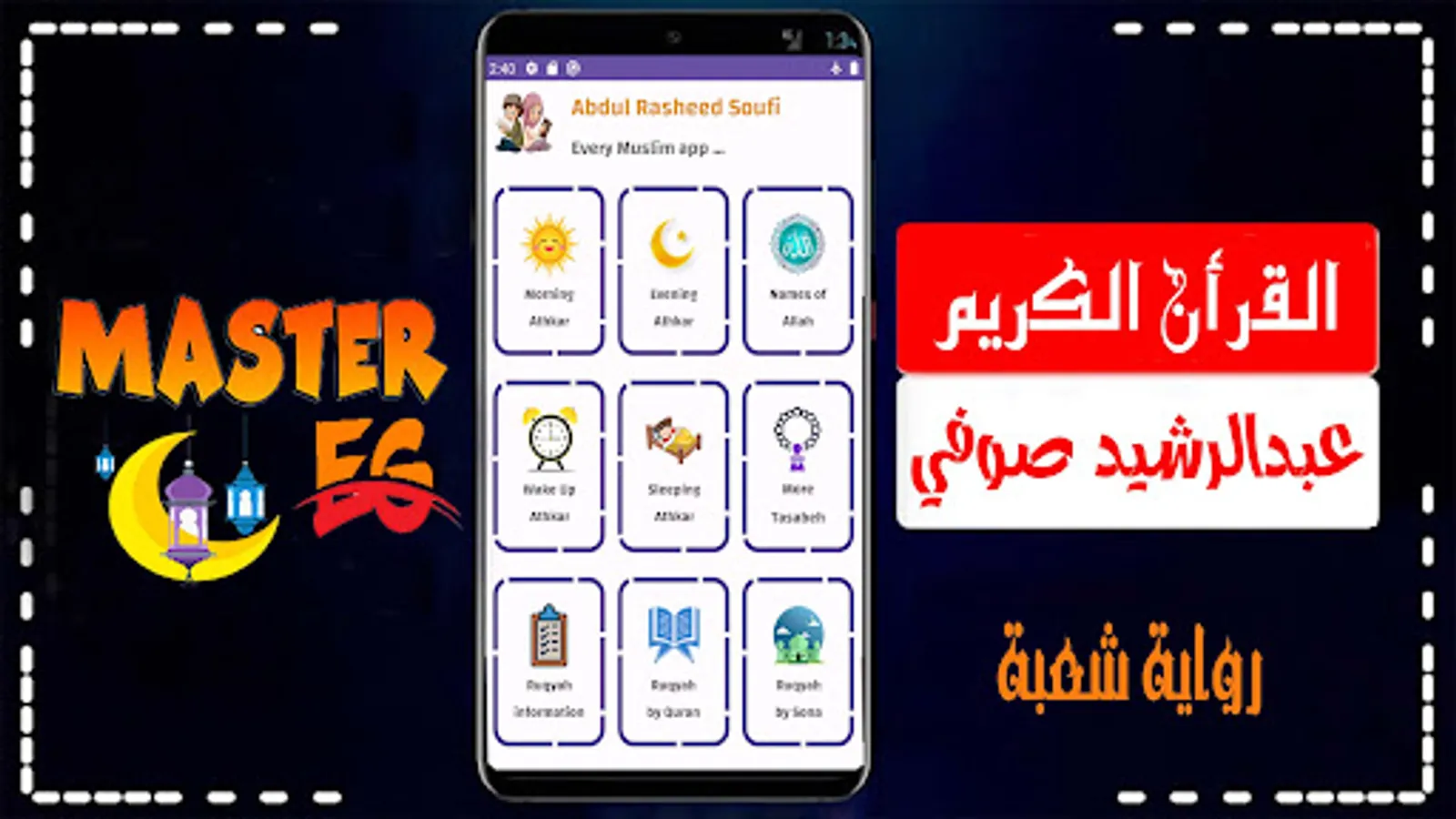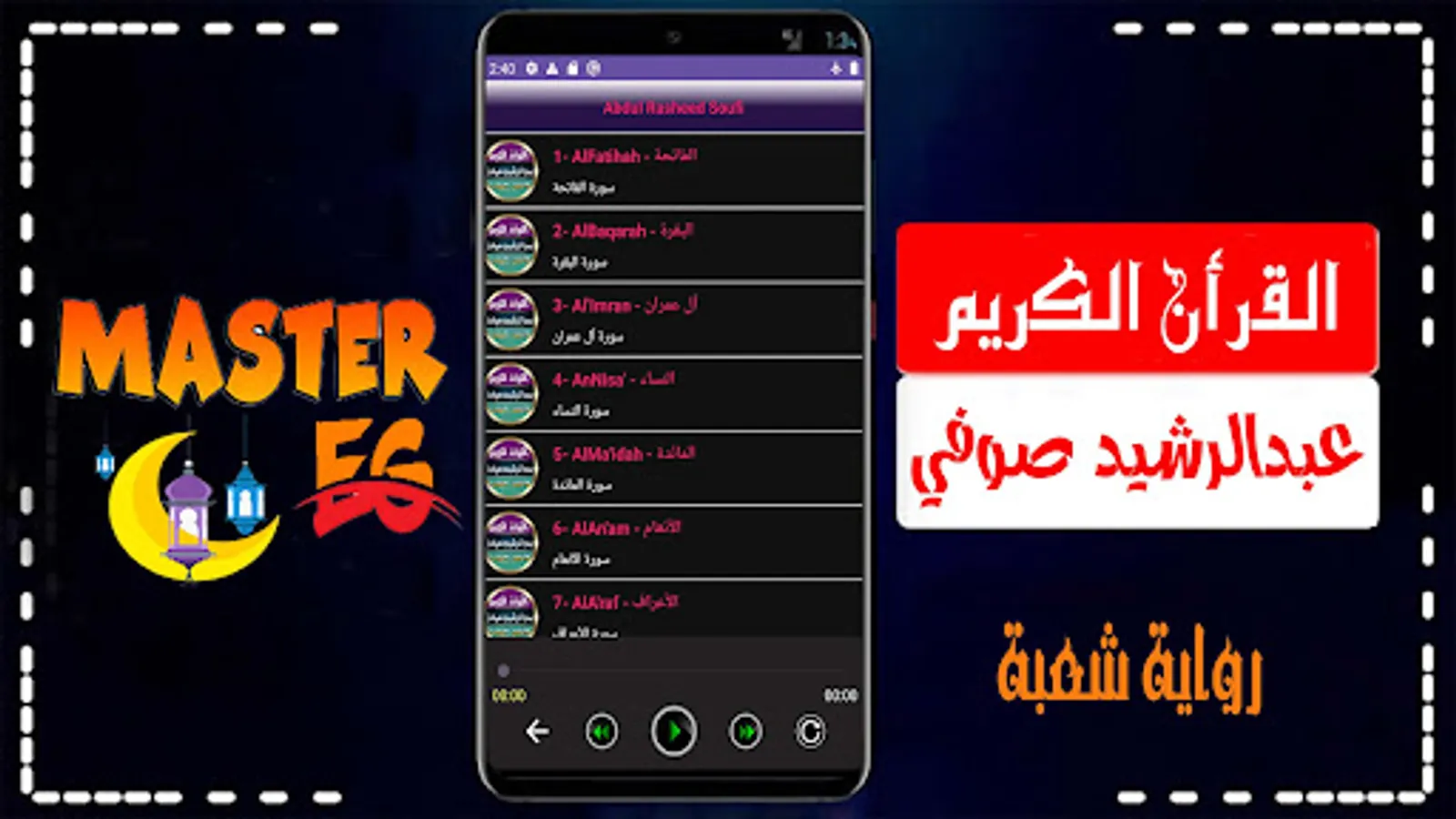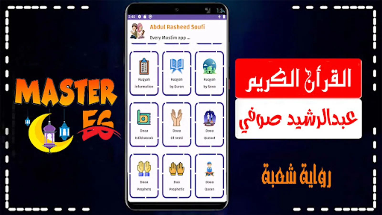 The application of the Holy Qur’an with the voice of Abd al-Rashid Sufi allows you to hear all the surahs of the Holy Qur’an through your mobile phone or tablet with ease and ease through one program that contains all the surahs of the Holy Qur’an. Store for Android phones. And you can download the application of the Noble Qur’an with the voice of Abdul Rashid Sufi with ease, so that you can enjoy reciting the Noble Qur’an with the voice of Sheikh Abdul Rashid Sufi wherever you want.
