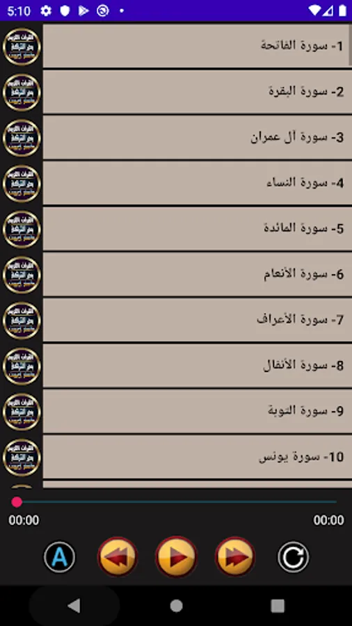 🔸 The feature of searching for the name of the surah and the number of the surah to listen to it easily