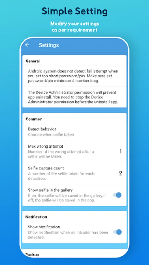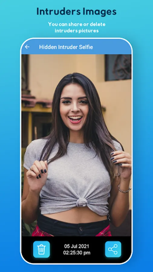 Hidden Intruder Selfie capture a photo of anybody who tried to unlock your phone without your knowledge. You can get notification alert, save and share intruder photo to your friends. Also, you can hide the picture from the gallery so no one can see it.