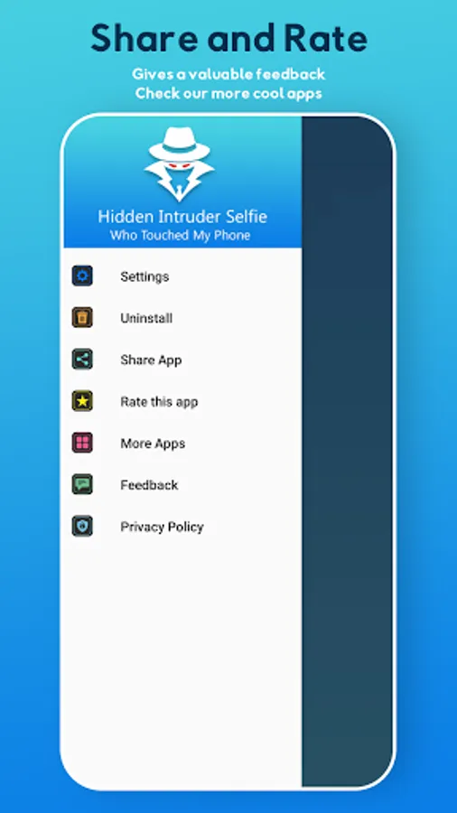 Do you worried about "Who Touched My Phone". We build hidden intruder selfie app for you. Hidden Intruder Selfie helps you to identify a person who tries to unlock your mobile. If unlock failed, app capture photo using a mobile front camera. The app works 24*7 days as phone guard.