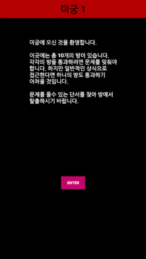 There are 10 rooms in total, and you have to find the key to go to the next room.