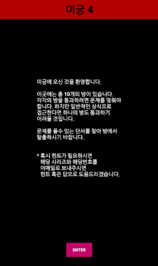 There are 10 rooms in total, and you need to find the key to move on to the next room.
