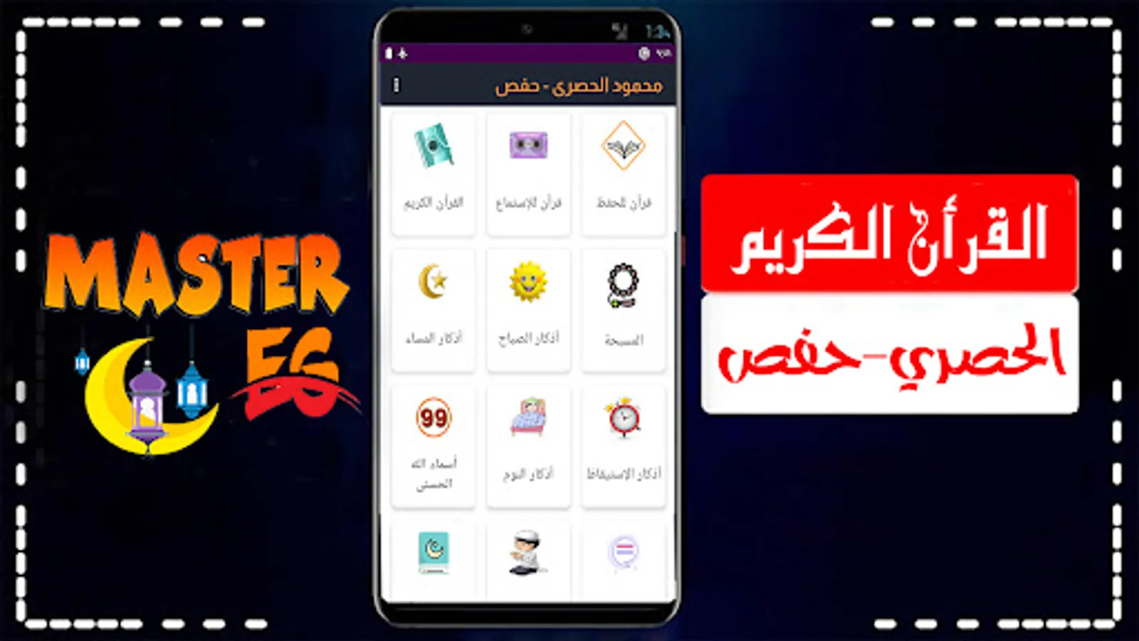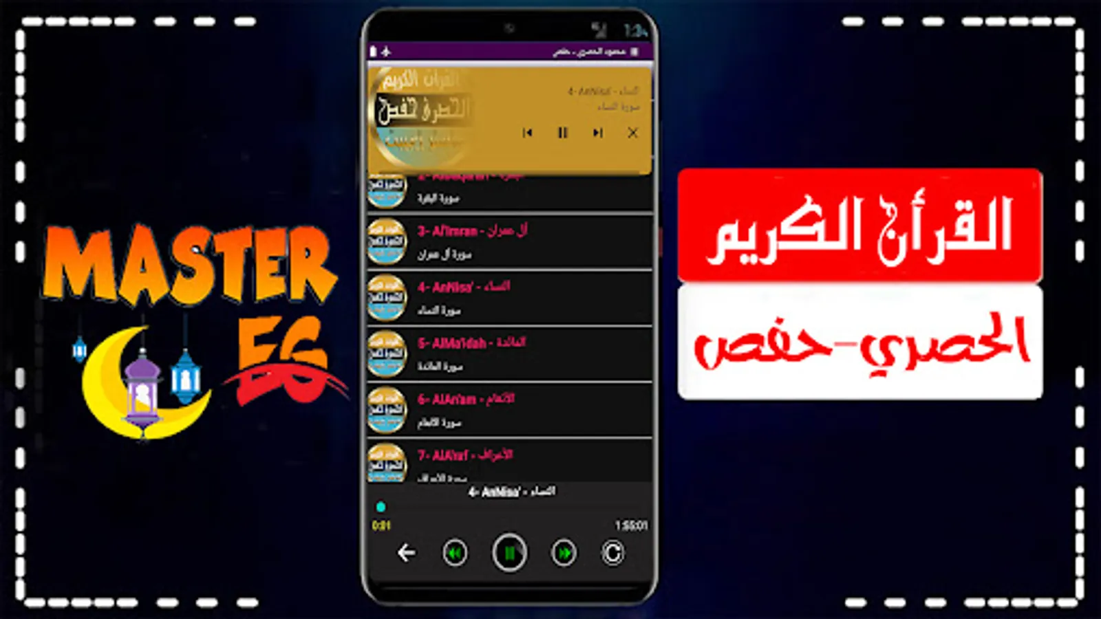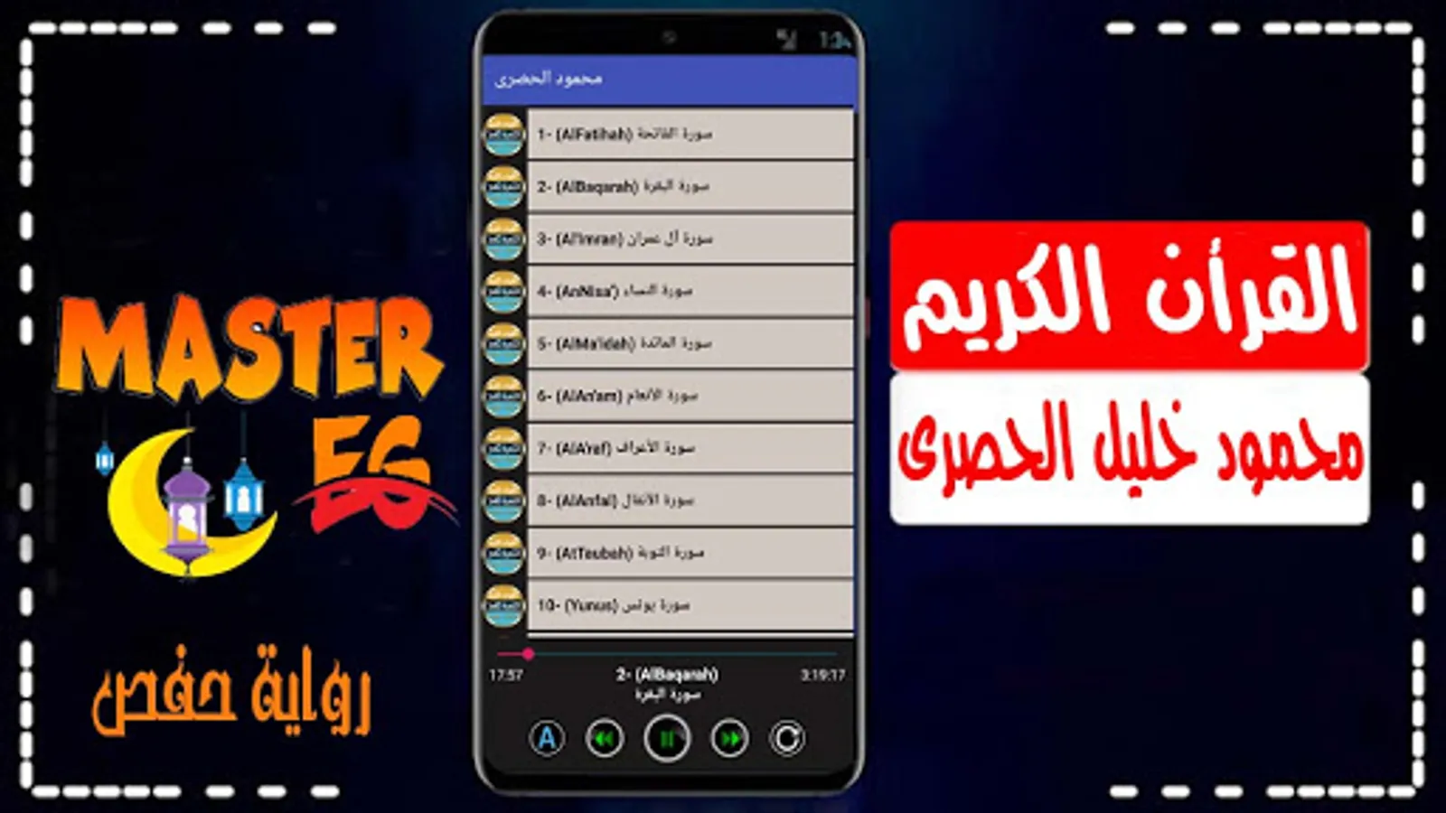 Definition of a complete Quran application, with the voice of Mahmoud Khalil Al-Hosary, without the net