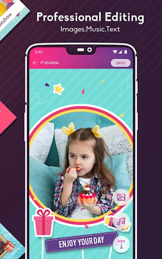 Text Editor: Include text messages to your videos, customize the fonts and styles with the help of this Video maker app. Text messages are great while creating slideshows of your best photos. Add transitions, stickers, effects, cool text message to make your editing look great and interactive. Also comes in handy to wish someone on their special day with a heartwarming message with the help of this video maker.