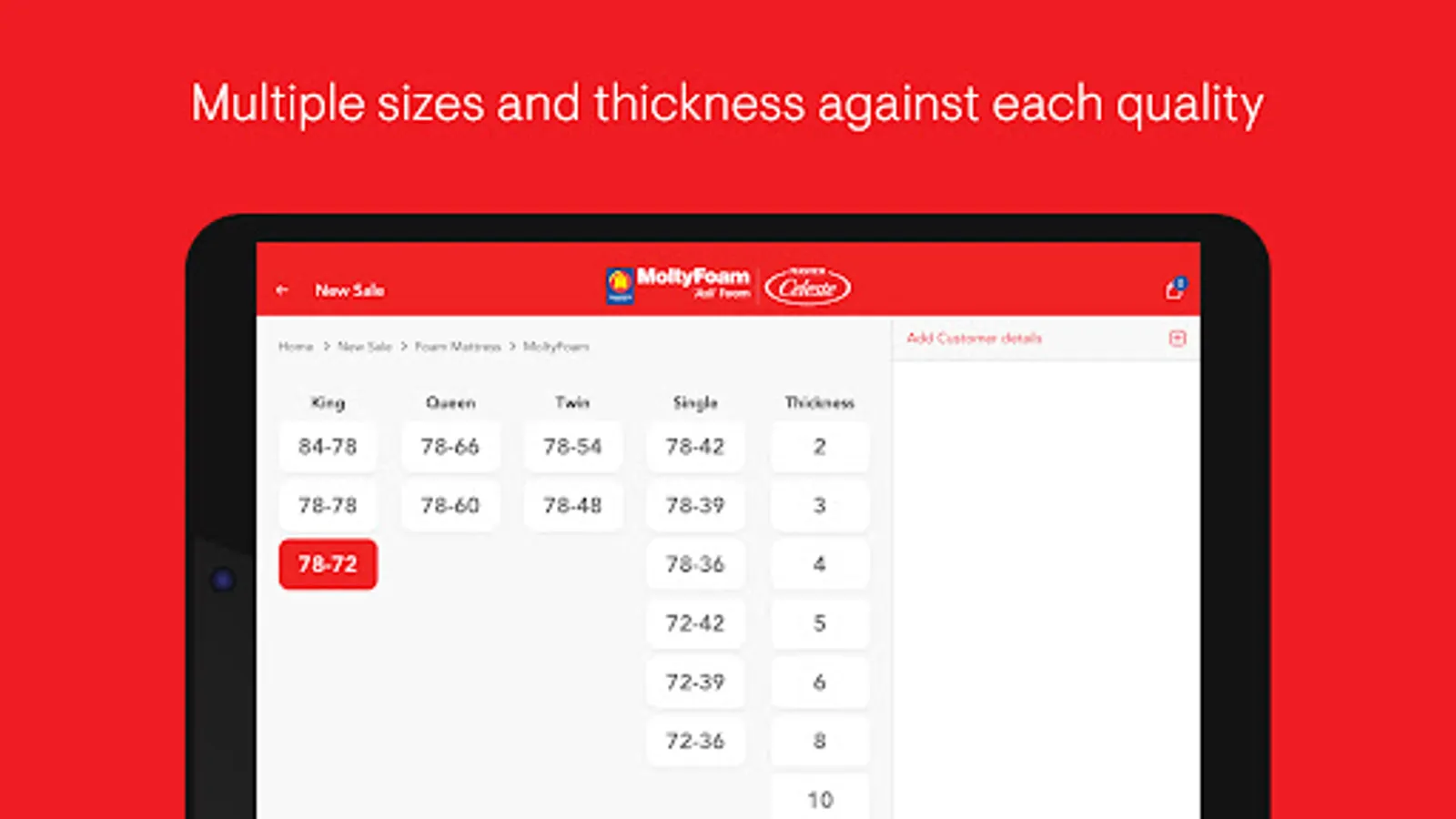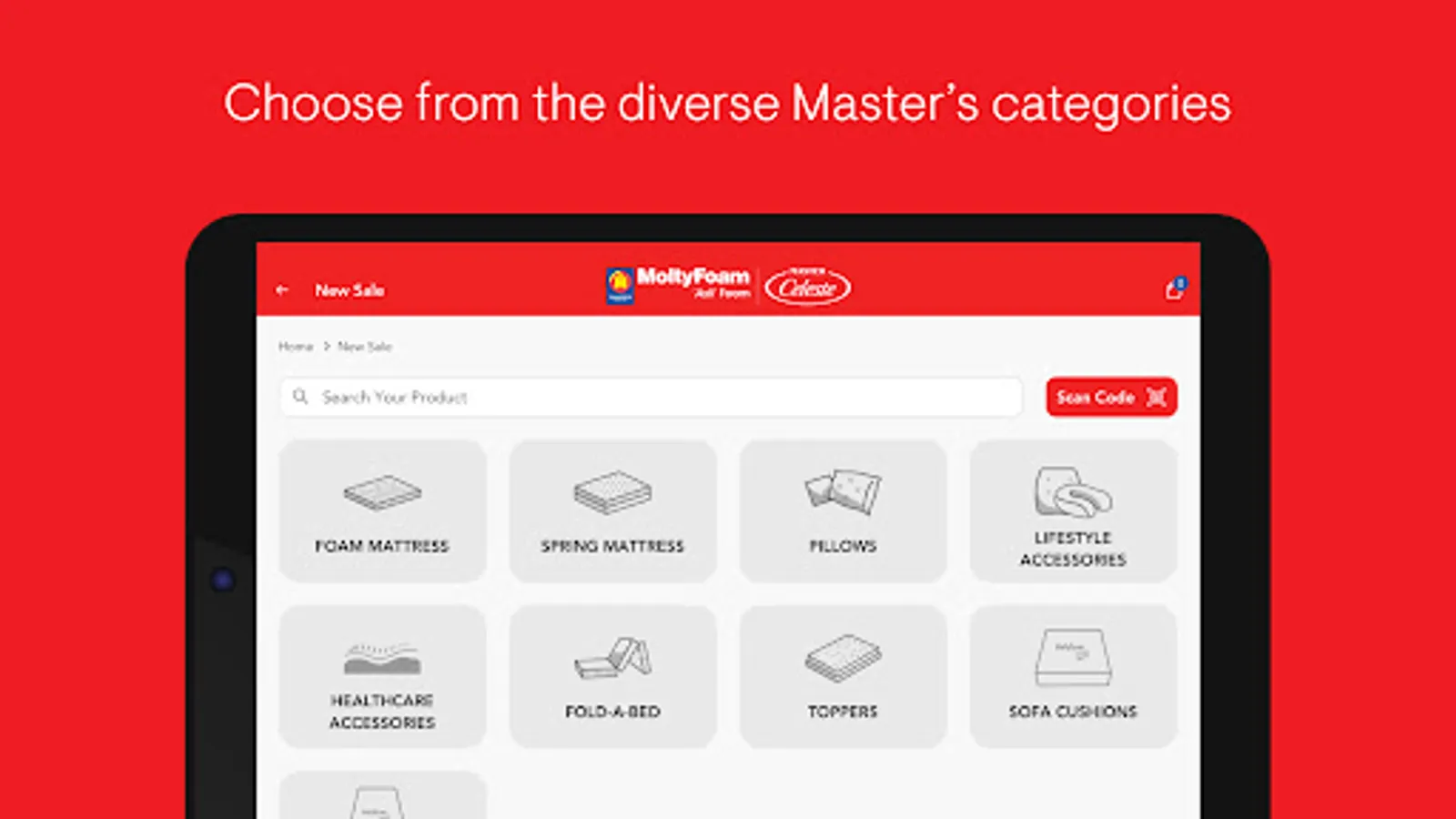 The Master's POS system is built to make the life of the dealerships of Master easier. A dealer can log in to the system to access the whole world of the products of Master Molty Foam. The dealer can choose a product based on its category, quality, and sizes.