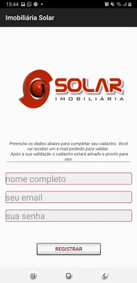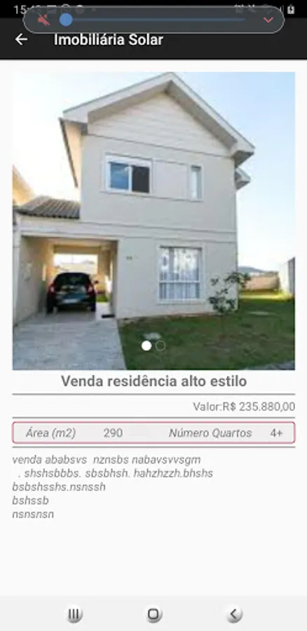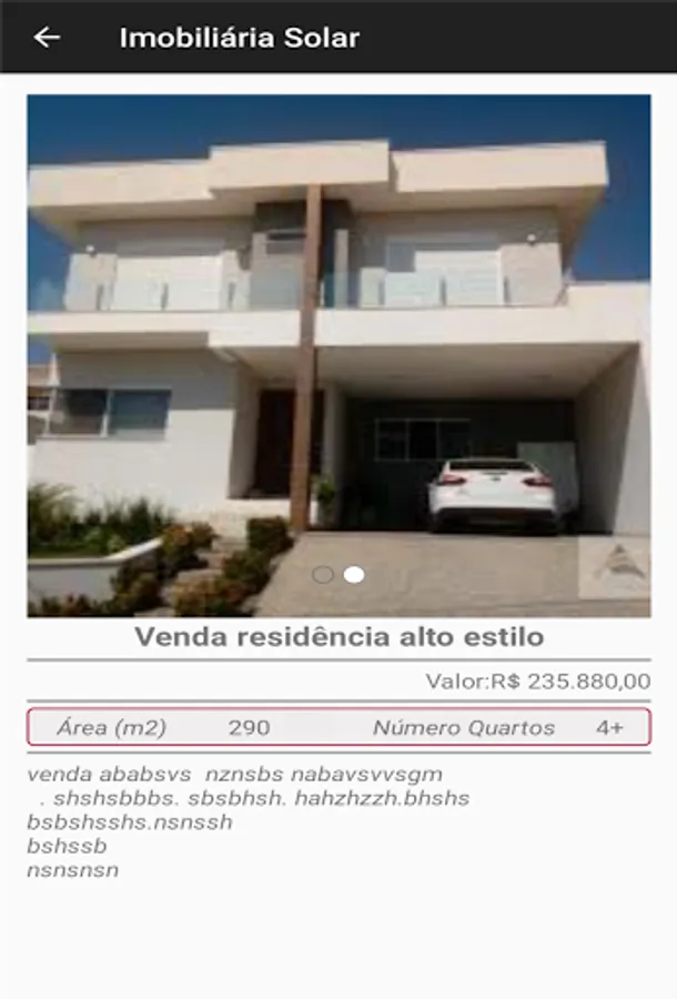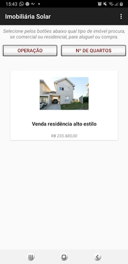 Presentation of the real estate portfolio of Imobiliária Solar available for rental or sale. It presents details, photos and values of the different real estate offers.