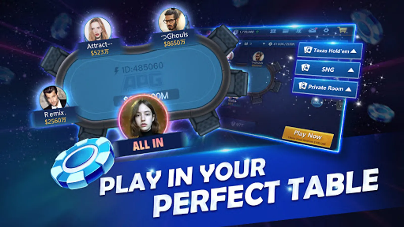 The Most Authentic Texas Holdem Poker Game recommended by poker pros! Join us to show off your poker skills and prove that you are better than the rest! Whether you prefer casual Texas Holdem Poker or competitive tournaments, you can find your poker world in APG!
