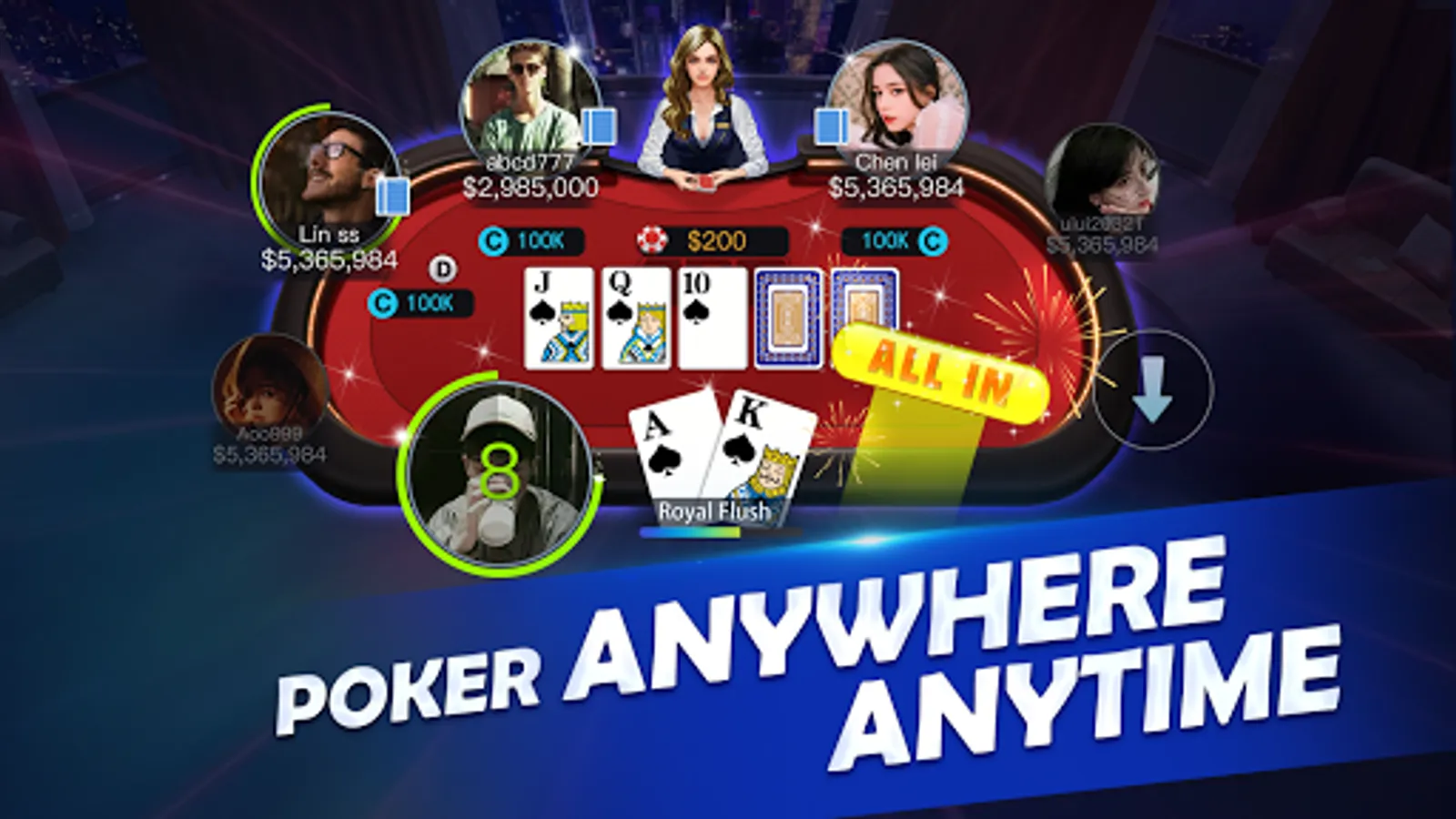 Get a welcome gift of rich free chips and collect free bonus every day. Complete multiplied quests and achievements to get more poker chips bonus! Don’t forget to spin and win big!