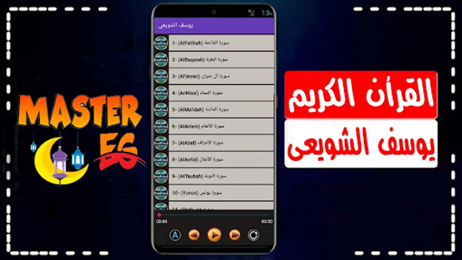The application of the Noble Qur’an for the reader, Sheikh Yusef Al-Shuwai’i, is characterized by listening to and downloading the Noble Qur’an, with the voice of Yusef Al-Shuwai’i, and you can download the Holy Qur’an to your mobile phone easily and conveniently through one application that includes all the surahs of the Noble Qur’an mp3 with the voice of the reciter Yusef Al-Shuwai’i