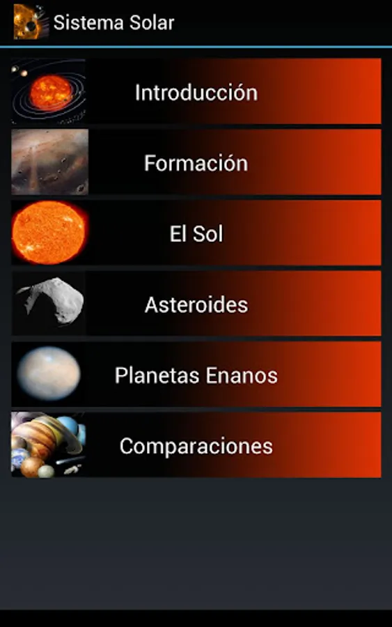 With this application you can discover the solar system, planets and can explore its main features through numerous images and thorough text. There are two sections: