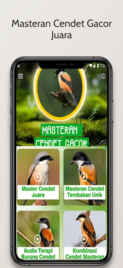 This application contains masteran birdsong cendet Suitable For Lazy Cendet Sound Therapy or Therapeutic Cendet Loss inducement to cendet jams that will always update for you all, you certainly will not hurt to download the applications Masteran Cendet gacor Latest Winner This! wait no more, download it now.