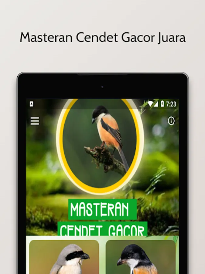 Masteran Cendet gacor Champion can you get through this application where you can easily play the sound of birds cendet gacor to train your mental cendet. Latest application master birdsong cendet as sound masteran can you use to fill the bird cendet and cucak green, as well as stone magpie that has the type of voice ngerol which of course is suitable for masteran cendet mp3 full gacor ngerol ngisi champion and long-suited to train the birds cendet. If you're looking for the right application around mp3 masteran birds cendet ngerol gacor so then this is definitely the answer. Come check Masteran application Cendet gacor Champion which we can play with ease through our Android devices, respectively.