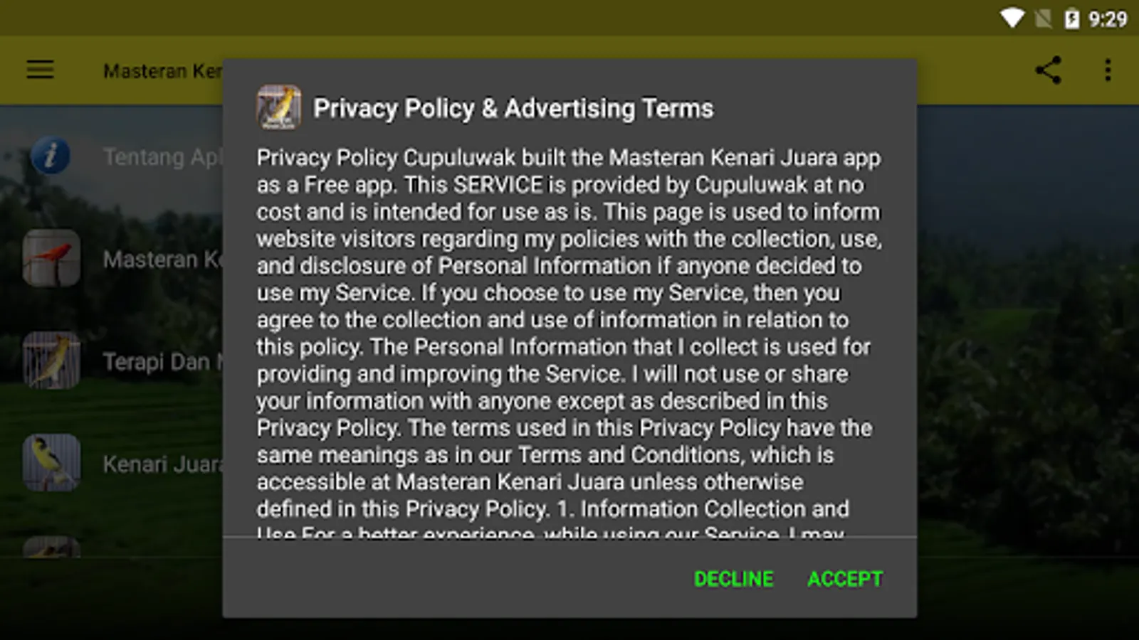 Going forward, we will always update Masteran Kenari Complete Champion. We wish all the friends always install the application so that we always have the support of all of them in developing this application. Hopefully Helpful for everything and congratulations use applications Masteran Walnuts Champion from your Android device, respectively. Thank you very much. Nb: Requires internet connection smoothly