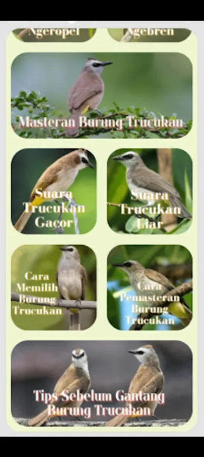 In the Top application the Trucukan Bird Sounds Collection, the latest diligent ngebren is easily summarized for you to listen to the masteran voice everyday. Download MP3 Trucukan Gacor Ropel Bird Sounds for Masteran which will always be the latest and updated. As a complement to the master, download the Ropel Trucukan Bird Sound MP3. Don't miss it to get a compilation of the sound of the Trucukan Master Mp3 Chirping, full gacor, filling in champions and long, suitable for training chirping birds with mp3 audio which will always be updated for all of you, of course you will never lose for the sound of masteran birds chirping Trucukan ngebren champion 1 accompanied by audio therapy after this sound jam!! What are you waiting for, download it right now.