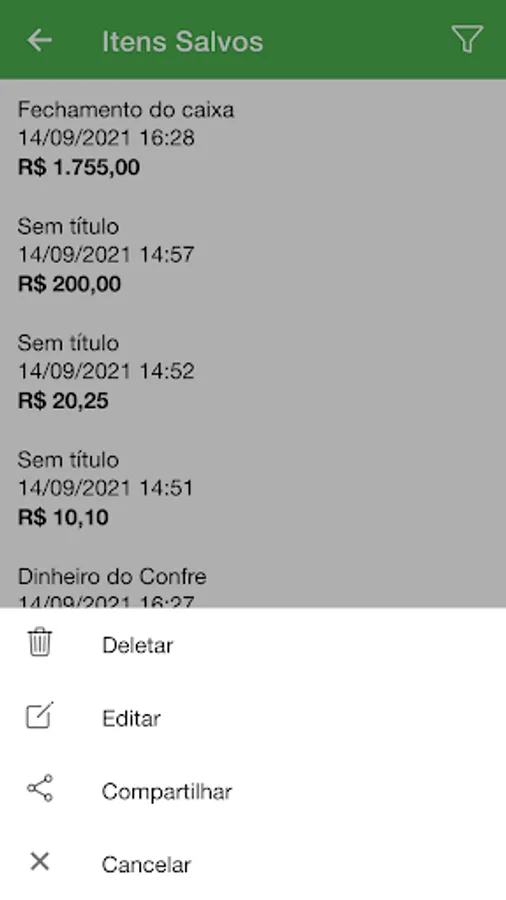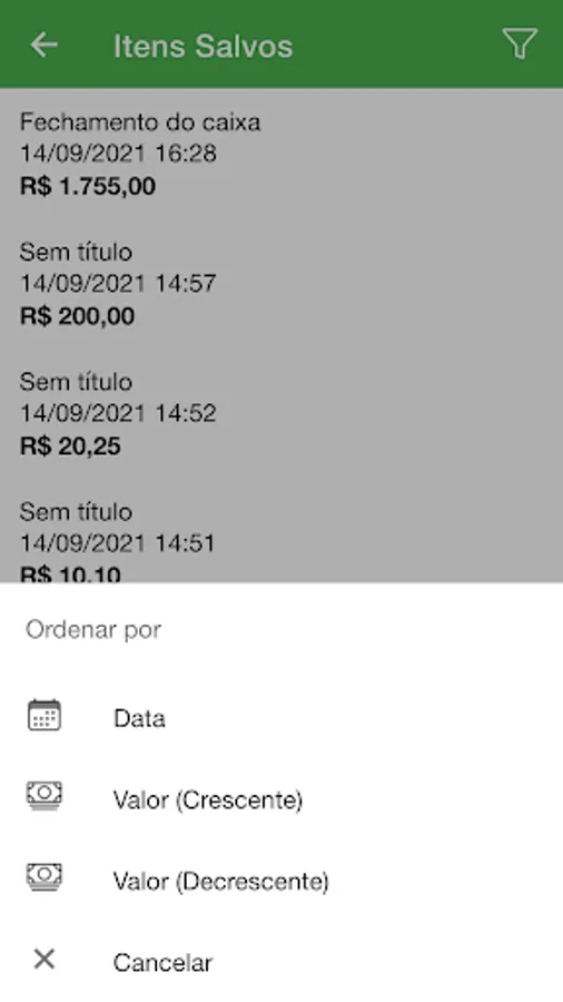You can sort the saved items by date and by value, making your cash control even easier.