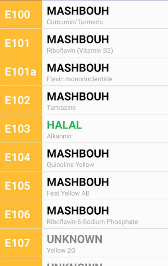 The most complete collection of food additives (E-Numbers/E-Codes) and their Halal status.