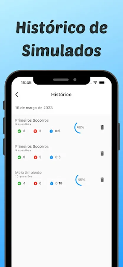 With Simula Detran, you have access to DETRAN simulations and a complete bank of questions, ensuring a complete and efficient study for the DETRAN test. Conquering your CNH is just a tap away. Don't waste time, download Simula Detran right now and increase your chances of success in the license test and the CNH test!