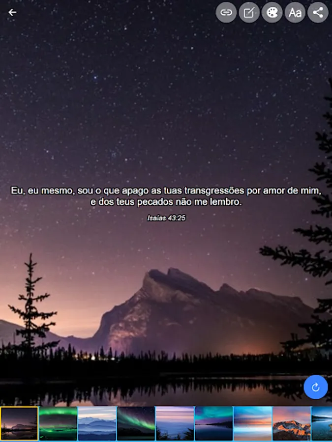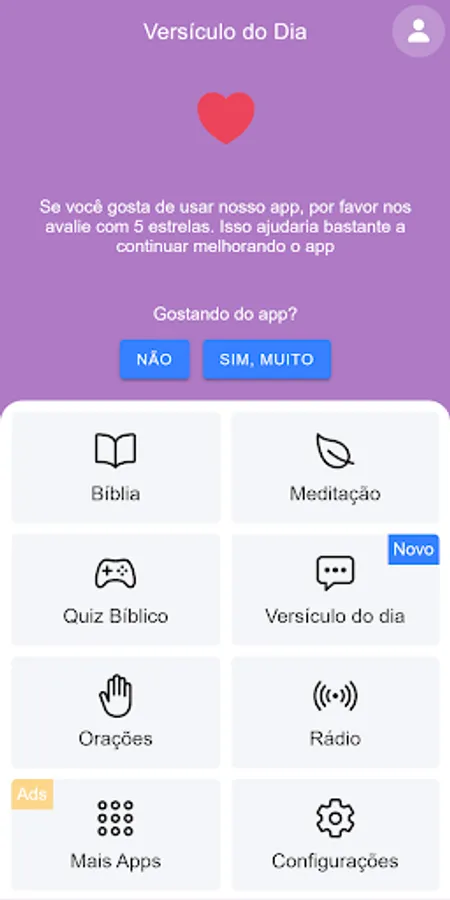 Another important field is the Meditations you may be meditating on from the proposed verse, and this tab gives you the choice for which area of your life you are needing to analyze and gives you heart-restoring and heart-restoring messages. which has a soundtrack that brings peace and tranquility.