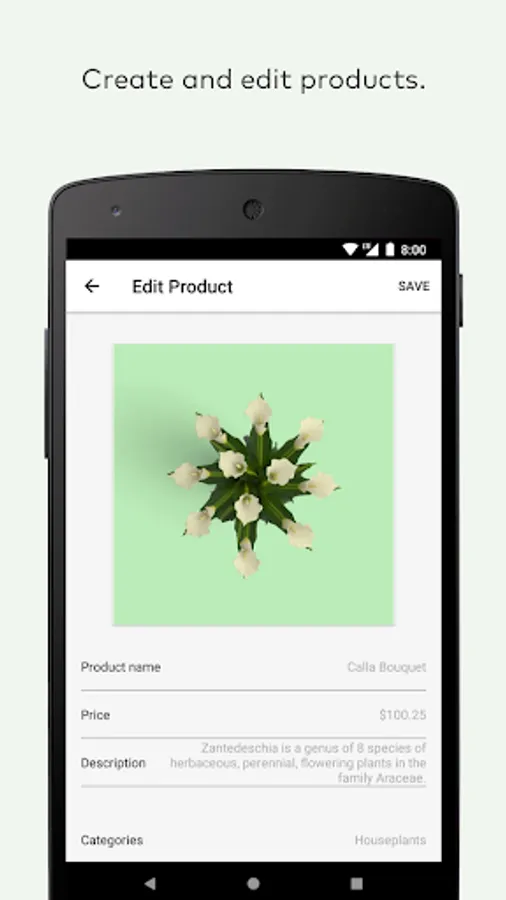 Run your storefront from anywhere. Use your camera and the app to add new products easily, update existing ones in seconds, and look at store orders.