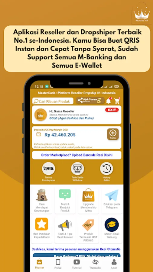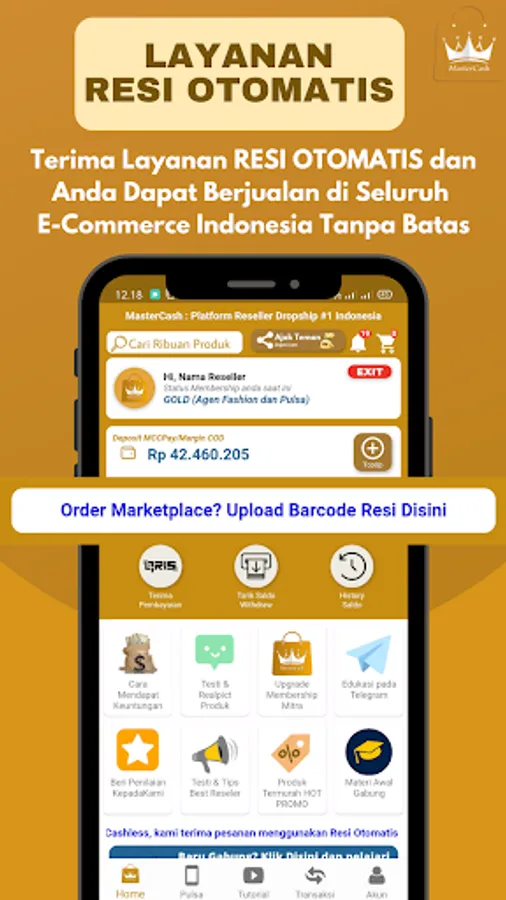 MasterCash is a Dropship Reseller platform which accepts orders using Automatic Receipts, can Cash On Delivery (COD) and various bank transfer payments, Shopeepay E-Wallet, Ovo, Dana, LinkAja, QRIS, Alfamart payments and others.