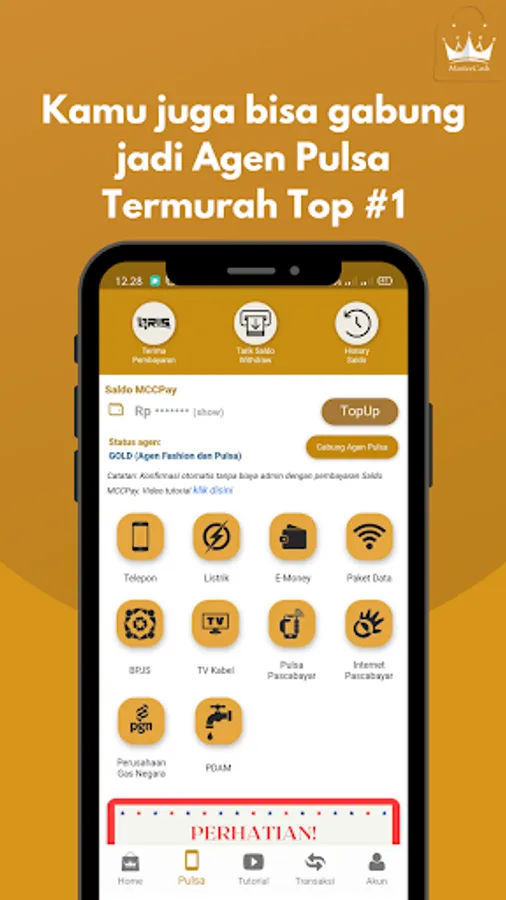ENOUGH 1 APPLICATION, want to sell digital products such as telephone credit, electricity tokens, internet data packages, postpaid products such as PLN BPJS, PDAM, CABLE TV and others.