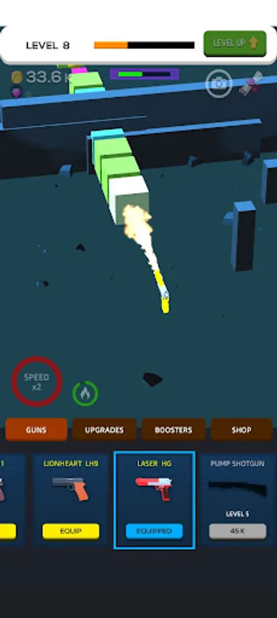 Easy to play and highly addictive! As you earn more gold, you’ll be able to unlock more powerful weapons to shoot and destroy the cubes. What’s more, you’ll be able to upgrade your weapons with many skills and unlock lots of great items.