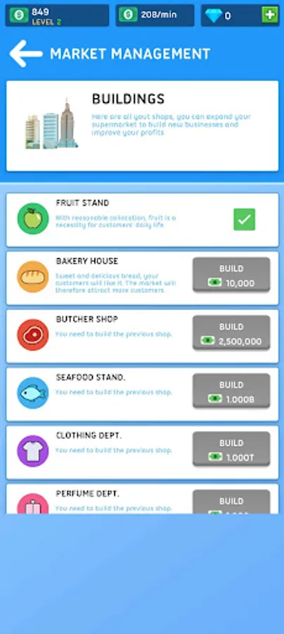 The role of the player in the game is the boss of a market. Your task is to recruit more workers, manage your market well, and increase your income.