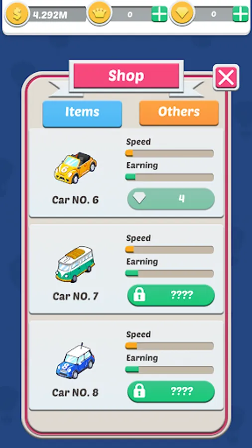 •Idle cars. Your cars drive automatically and earn money even while you offline.