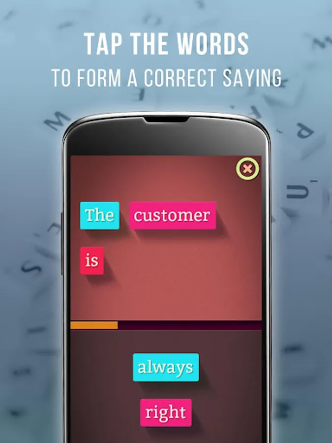 Learn English Vocabulary - Proverbs & Sayings Master is a fun and educational word puzzle game for improving English vocabulary. The app includes numerous English sayings and proverbs for students & native speakers of most international languages in order to improve vocabulary. Sayings Master provides an easy way to learn and practice English.Learn English sayings, vocabulary, and proverbs for free as you play Learn English - Sayings Master.