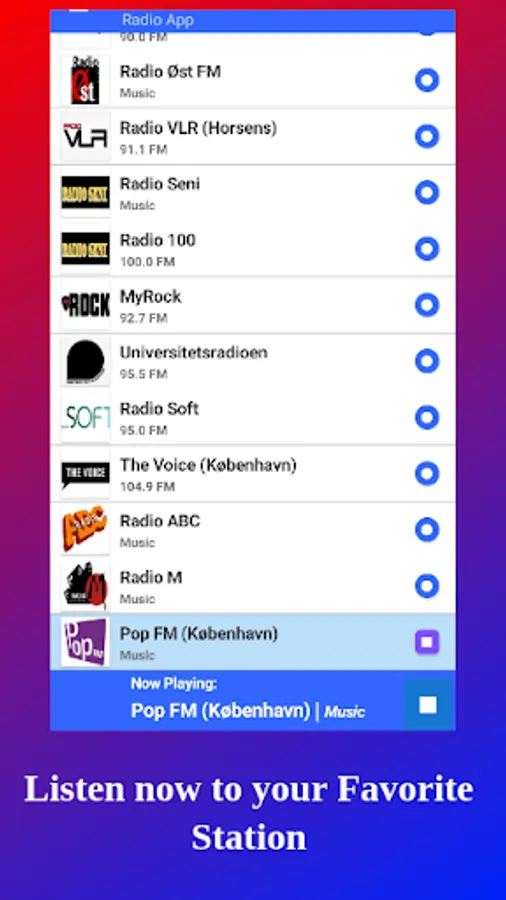 The most popular and most listened to radios of Denmark have been selected. If you can't find your favorite radio, please send.