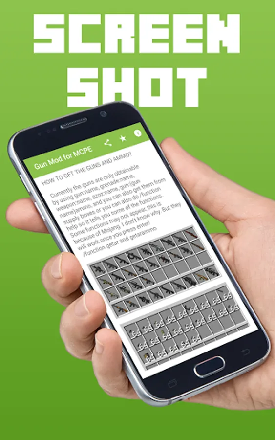 Please note that this Gun Mod for MCPE application is not an official Minecraft product, not approved by or associated with Mojang.