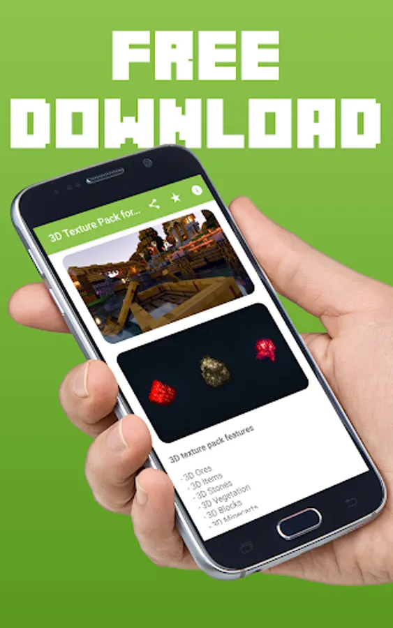 3D Texture Pack for Minecraft is here to help you easily install Minecraft 3D Texture Pack Addon into your Minecraft Pocket Edition! With our 1-Click Installation make it easy for you to download and install Minecraft 3D Texture Pack in Minecraft Bedrock game in 1 SINGLE TAP!