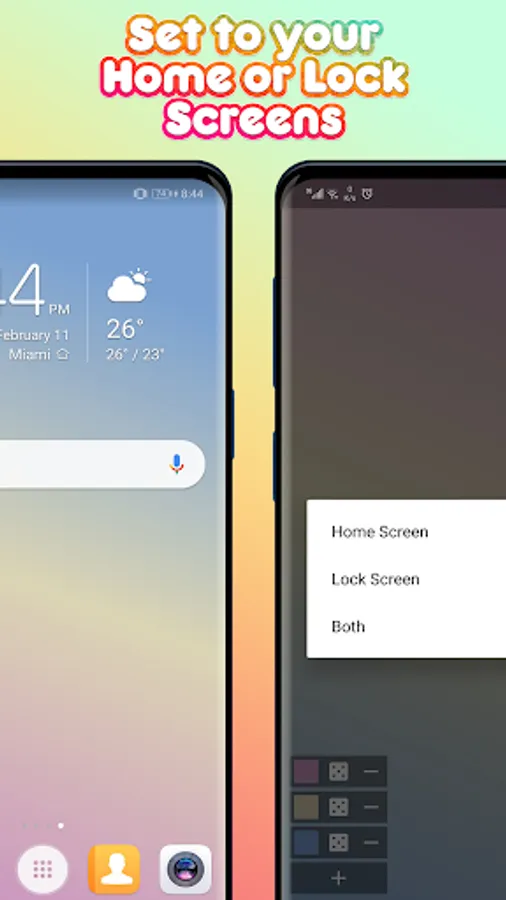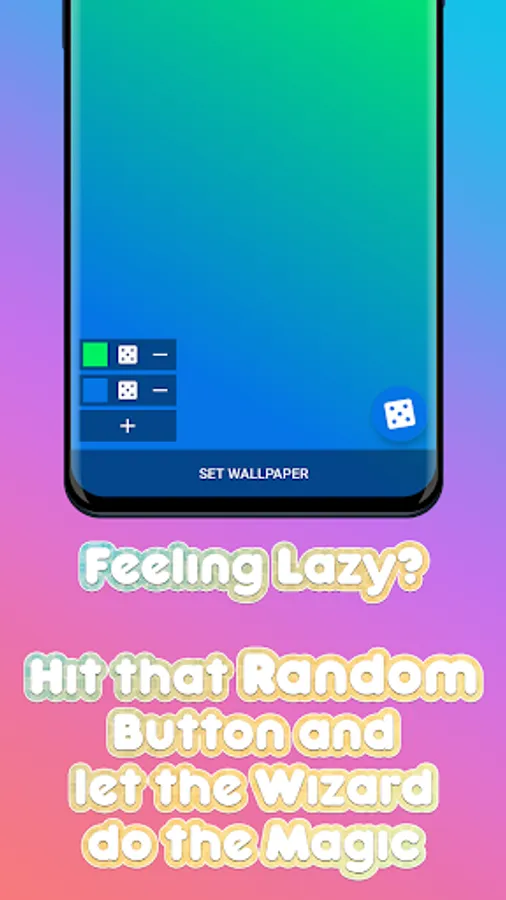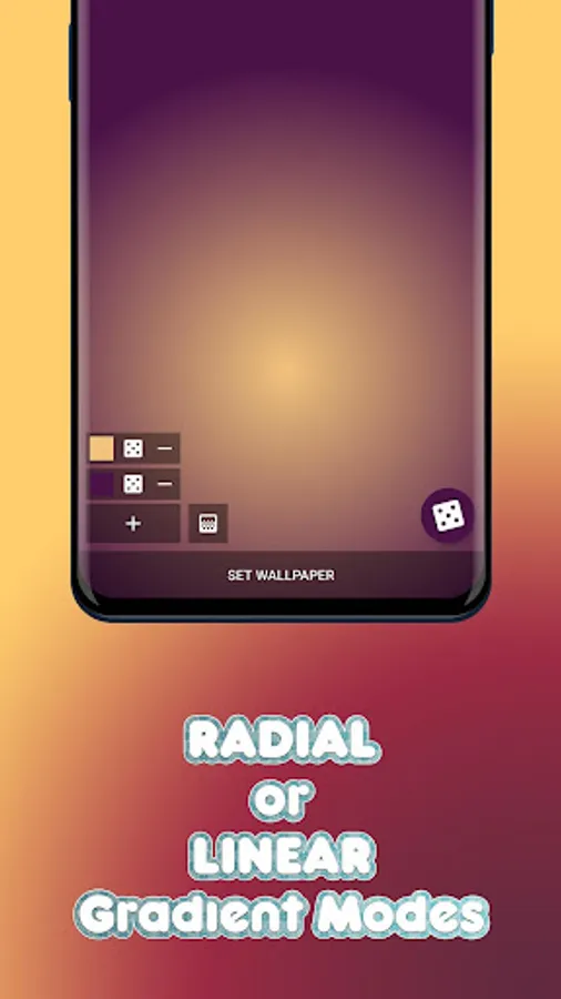 Choose your favorite colors and use your fingers to freely adjust the gradient angle and size to create the best wallpaper for your phone.