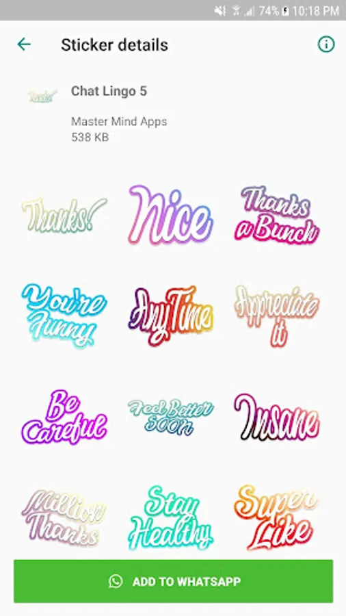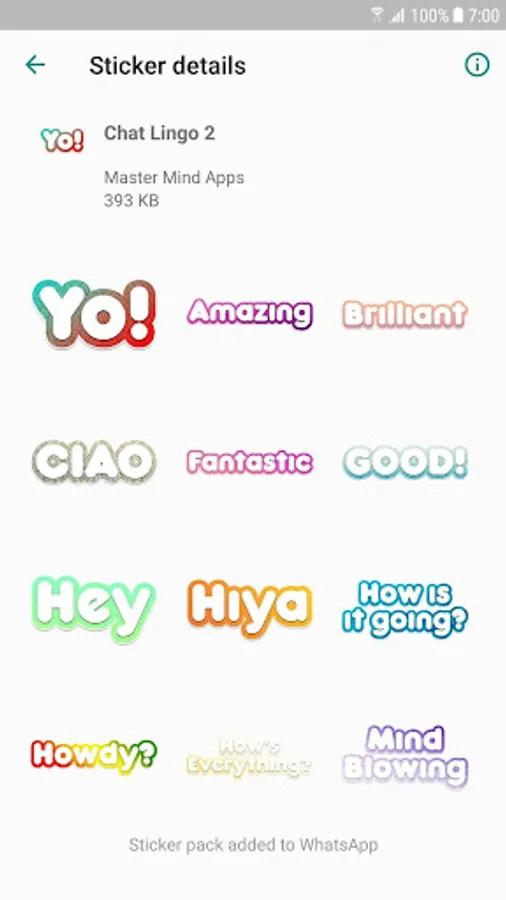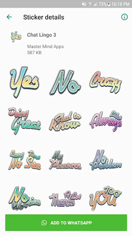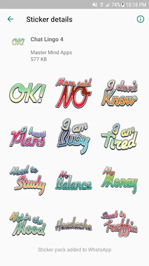Send colorful text stickers like Hi, Bye, Good morning, Good evening, Good night, I love you, and many many more.