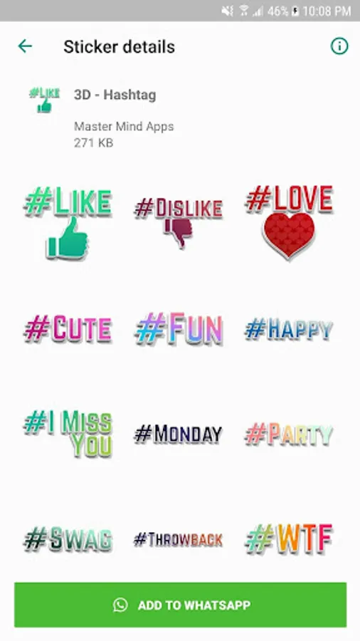 Contains collection of text stickers and are translated to several languages based on your requests, and a colorful unique 3D hashtag packages to share with your followers.
