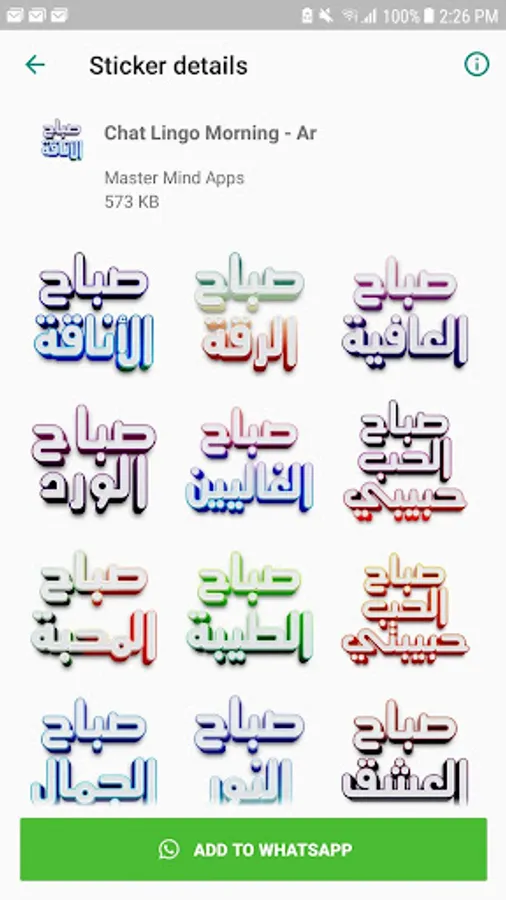 The application contains only good morning collections such as Sabah Al Noor, Morning Love, Sabah Elegance, Sabah Al Ward, becoming your morning