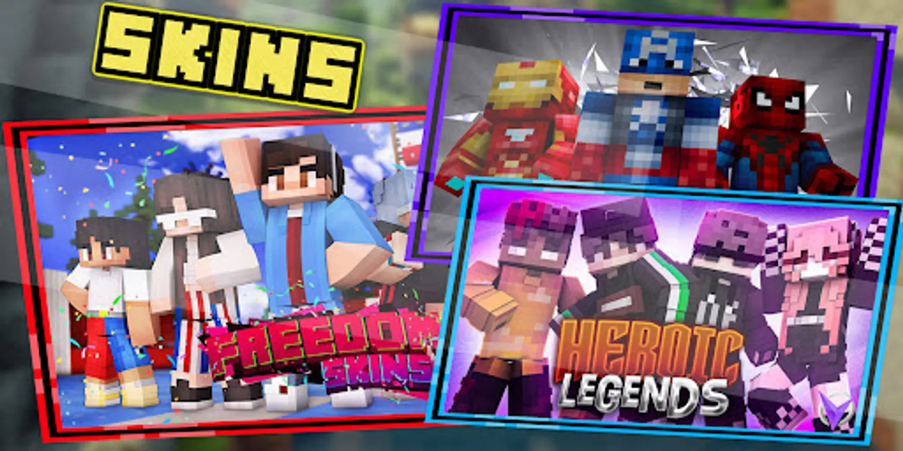 Upin ipin skins, Hero skins, Skins for boys, Skins for girls, Anime skins, Skins for PVP and much more (zombie, animals, military, monsters, celebrities, robots and youtubers).