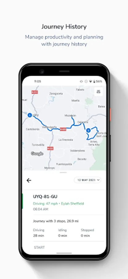 With the Connect app, you get the power of Masternaut Connect tracking and telematics while you are away from the office. See an overview of your fleet vehicles, including their locations, journeys, and status (driving, stopped, etc.). With this real-time, mobile access to your fleet, you can monitor and direct your fleet operations with ease.