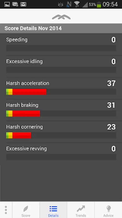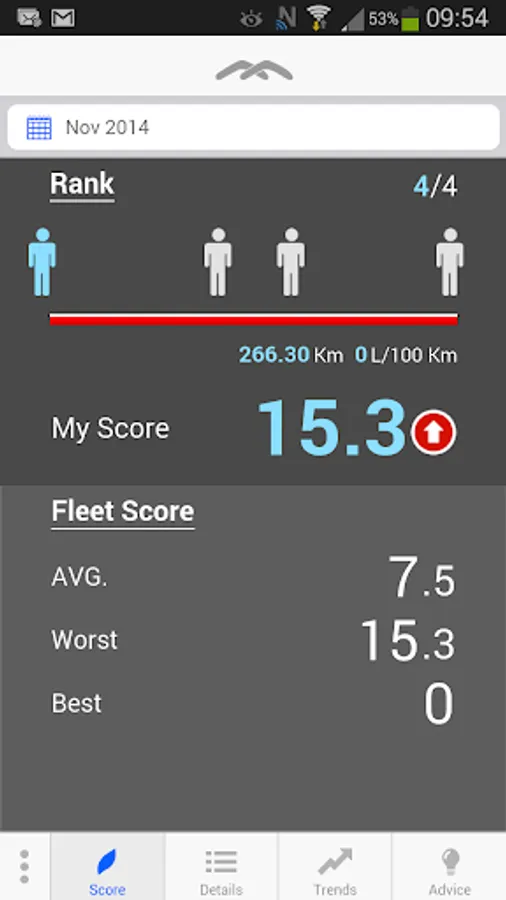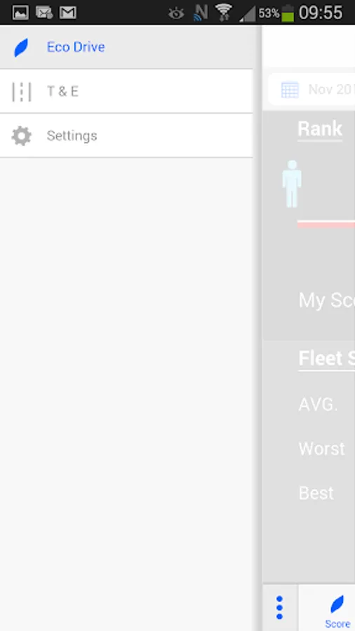 - MyScore Home Screen with personal score, fleet score, graphical fleet ranking, personal score trend
