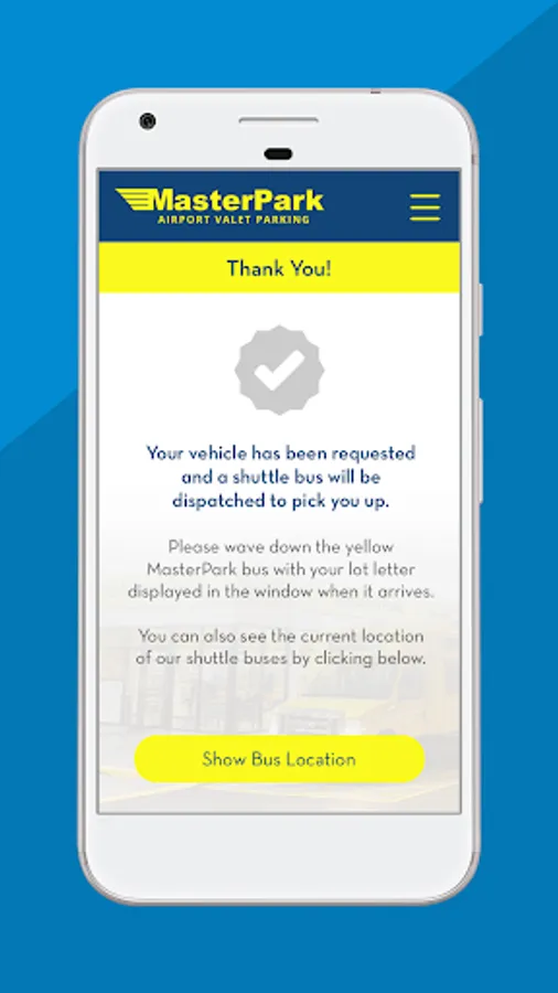 The Master Park Valet app allows Master Park customers to request the return of their vehicle and view real-time location of shuttle buses.